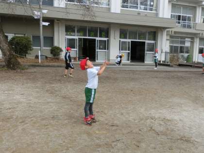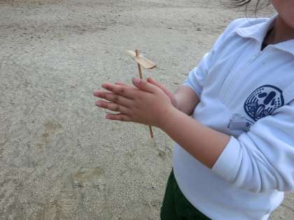 1年生の生活科で、「むかしあそび」を教材にして学んでいます。今日は、運動場で竹トンボを飛ばしました。飛ばすところを見てほしいという児童がたくさんいて、上手に飛ばしたいという気持ちが伝わってきました。