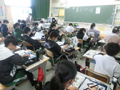 5年生の書写です。今回の課題は、「近づく春」です。季節にふさわしい言葉です。