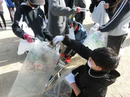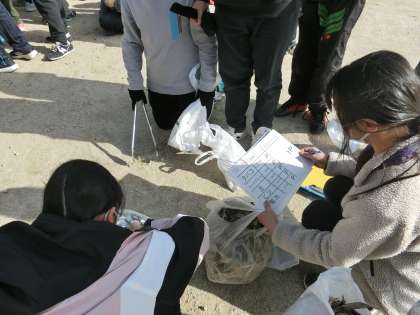 写真は、集めたごみを分別しているところです。6年生の活動が、地域の環境美化の手助けとなりました。6年生のみなさん、お疲れさまでした。