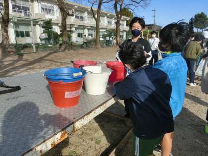 6年生が、卒業プロジェクトの第1弾として新池の美化活動を行いました。校外授業でも訪れる新池へのお礼の気持ちも込められています。