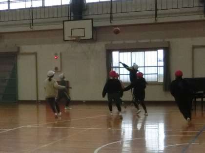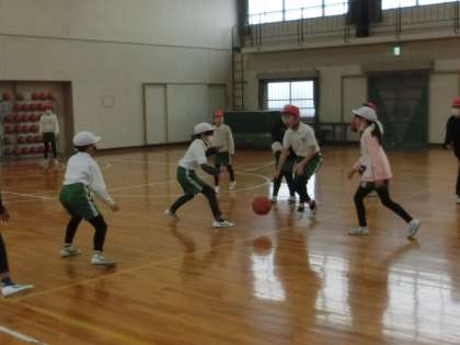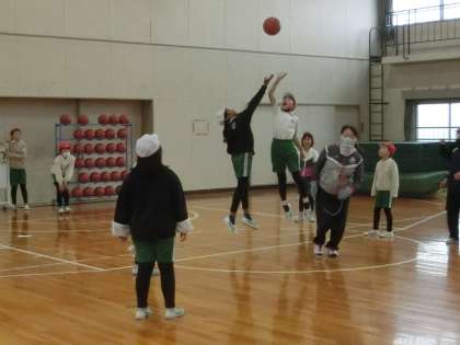 4年生の体育館での体育は、バスケットボールをがんばっています。今回の授業は試合形式で行っていました。今後、フォーメーションやポジションどりなどを考えて、試合のレベルアップを目指します。