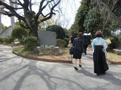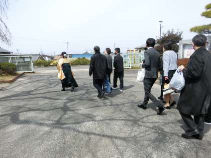 門出送りで、5年生と教職員が卒業生の門出を拍手で送りました。