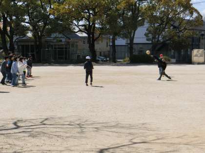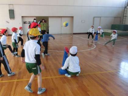 1年生が体育館、5年生は運動場でドッジボールで、盛り上がっていました。今日は、昨日よりも風が穏やかで、運動日和でした。