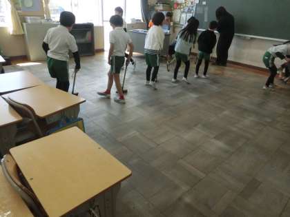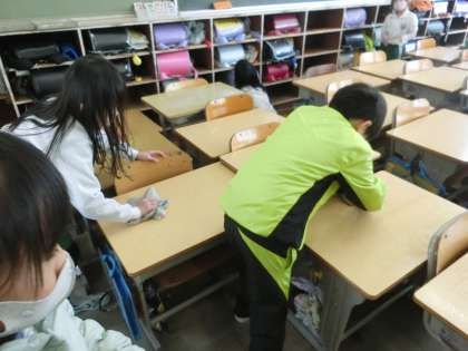 2年生の別の教室では、教室の床やロッカーの上もきれいにしていました。すみずみまできれいにして、次の人に使ってもらう準備ができました。