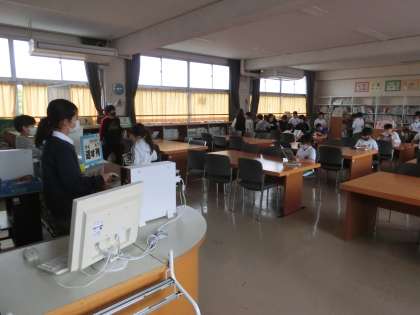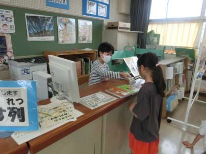 図書委員の児童は、当番制で本の貸し出し、返却の仕事をしていました。全校のために委員会活動をがんばっている児童の姿を見るとうれしくなります。
