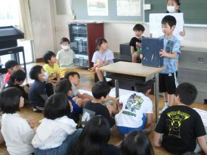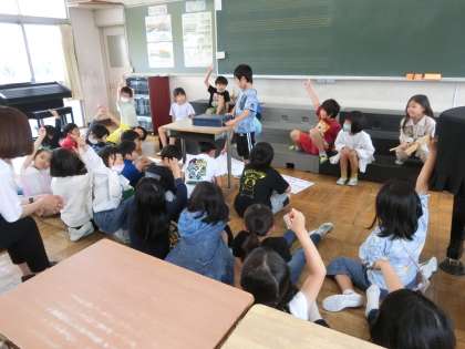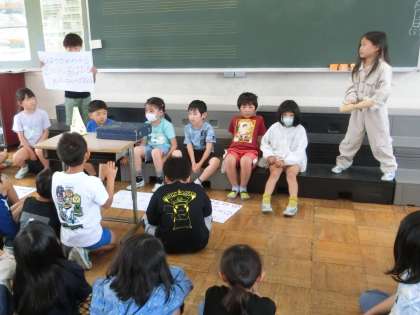2年生の生活科です。1年生に音楽室を案内する児童たちが練習をしていました。昨年度は案内してもらったことを思い出して、今度は案内する側として頑張ります。