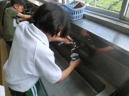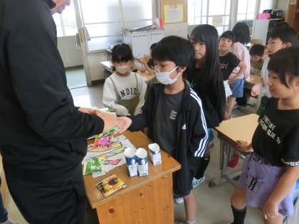 3年生の理科です。植物の育ち方を調べるために、種を植えて準備をしています。種は、ヒマワリ、ホウセンカなど4種類の中から、自分たちで決めて選びました。植物の種類によって育ち方がどう違うのかを比べていきます。