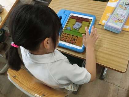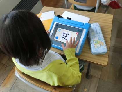 学習用タブレットで復習をしています