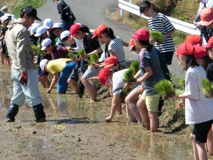 田植え体験を通して、普段当たり前に食べているお米の生産の大変さを実感し、食べ物の大切さや尊さを学びます。高岡営農センターのみなさん、児童の学習にお力添えいただき、ありがとうございました。