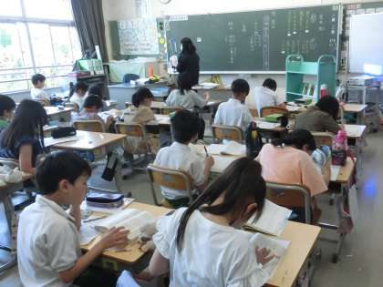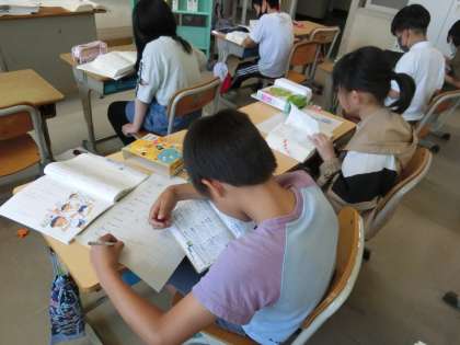 4年生の国語です。物語の学習で、書かれている言葉の意味を国語辞典で調べています。言葉の意味を知ることで、物語の読み取りを深めていきます。3年生で学習した、国語辞典の使い方が生かされています。