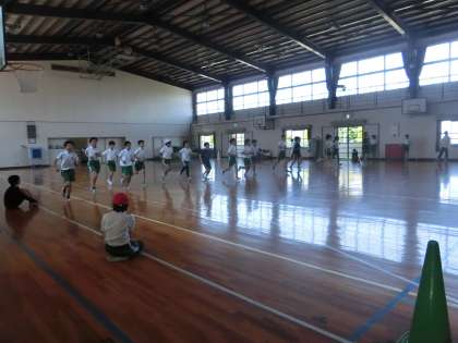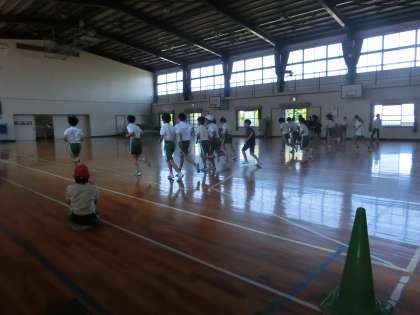 6年生の体育です。プールの割り当てがない日の体育で、シャトルランを行いました。リズムに合わせて、一定の距離を何往復できたかを測定しました。昨年度の自分の記録に比べてどういう結果が出せたでしょうか?
