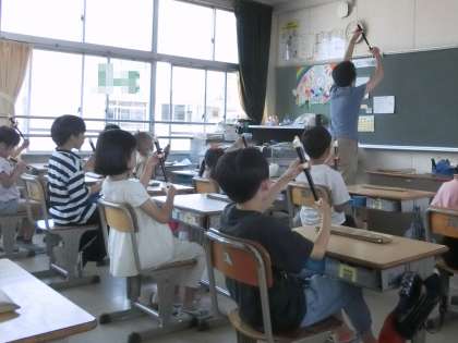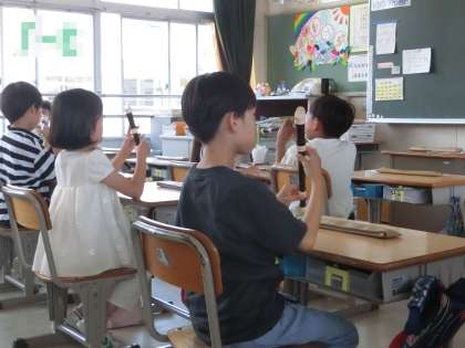 3年生の音楽です。リコーダーの講師の方に来ていただき、リコーダー演奏について学びました。持ち方や、穴の押さえ方、息の吹き込み方、タンキングの方法などを教えていただきました。これから、いろいろな曲が演奏できるように練習していきます。