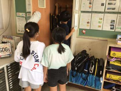 今日の清掃の目標は「道具の整頓」でした。児童たちは掃除が終わったあと、きれいに道具を片付けていました。片付けまでが、清掃時間ですね。これからも、続けていきましょう。