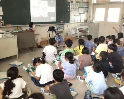 3年生の社会です。食品会社の方を講師に、オンラインでSDGs教室として、食品ロスを減らすための取組を学びました。