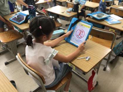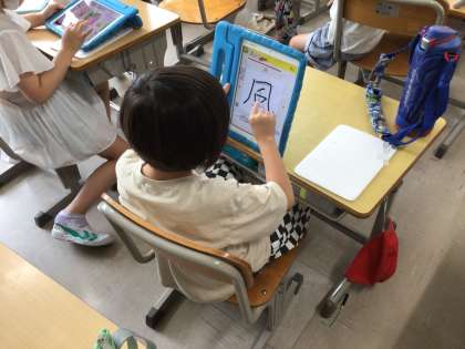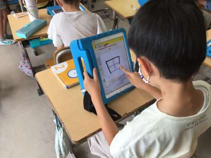 早くできた児童は、学習用タブレットで学んでいます