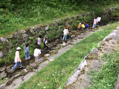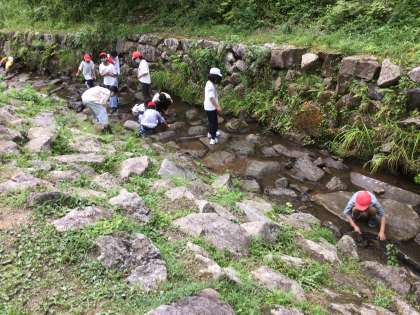 写真入れが完成した児童は、さえずり広場の近くで沢遊びをしました。サワガニを見つけた児童もいました。