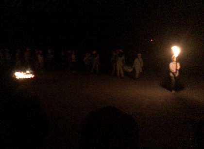 クロージングファイヤーです。山の神から「思い出」の火、「信じ合い、思いやり」の火、「助け合い」の火をさずけてもらい、児童たちの心にも温かい火が灯りました。最後は、それぞれの火を先頭に宿泊棟に戻りました。これからの生活でも、それぞれの温かい火を大切にしていきましょう。