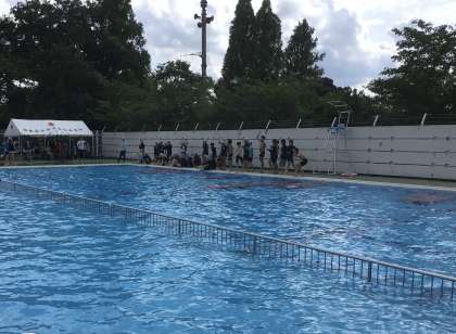 水泳学習の内容が終わった6年生がプール納めの会を行いました。学年の実行委員が考えた競技なども行い、小学校での水泳学習が終わりました。
