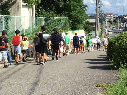 夏休み明け、初日の朝の登校時には民生児童委員の方々が「愛の一声運動」で、門の前で児童たちを迎えていただきました。帰りは、セーフティの方々が下校時間に学校に集まってくださり、児童たちと一緒に下校をしてくださいました。