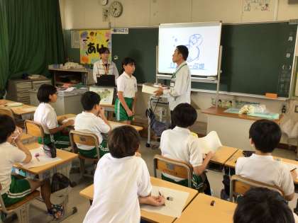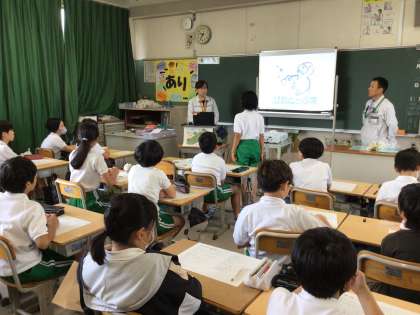 授業の終わりには、代表児童からお礼の言葉をお伝えしました。また、5月から各学級で育てたメダカの卵からかえった稚魚をお渡ししました。堤工場のビオトープで大きく育つことを願っています。