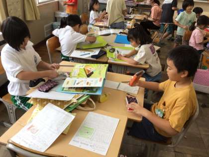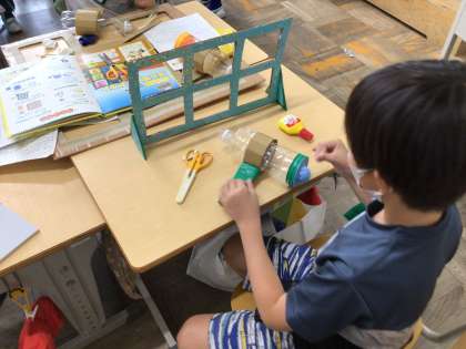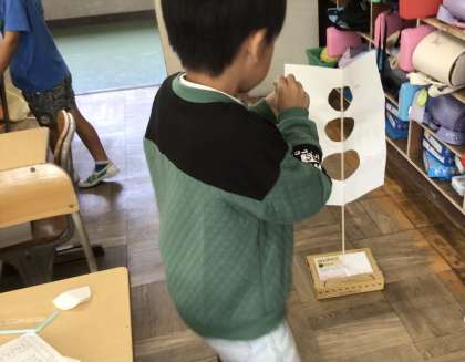 2年生の生活科です。みんなで遊べるゲーム作りをしています。設計図をもとに作りながら、みんなに楽しんでもらうためにはどうしたらよいか、あぶなくないように遊ぶにはどうしたらよいかなどを試しながら作っています。ご家庭での材料の準備へのご協力、ありがとうございました。