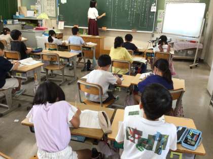 3年生の国語です。話し合いの方法について学んでいます。グループで司会者などの役割分担を決め、話し合いの目的を考えて実際に話し合いを行っていきます。この学級では、運動会を題材にして話し合います。どのように話し合いが進められるのか楽しみです。