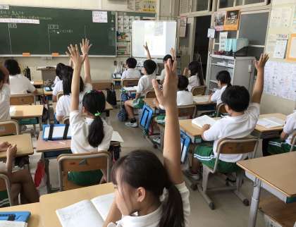 4年生の社会です、「郷土の伝統・文化と先人たち」の単元で、愛知県に古くから残るもの(建物、芸能、お祭り)について前時までに調べたことを発表し合いました。発表の中から疑問に思ったことをもとに、新たな学習課題をつくり、学習を深めていきます。