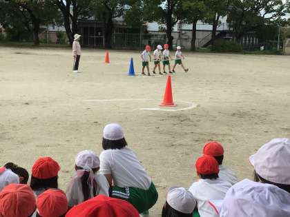 3年生の運動会の競技の練習です。初めて行う競技のルールの確認を行っていました。ルールを理解することは、競技がうまくいく第一歩ですね。