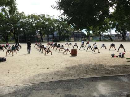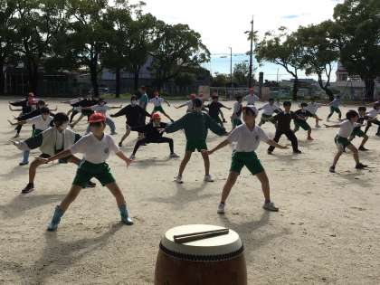 6年生の「竹村ソーラン」の練習です。立ち位置を確認し、動きの練習をしています。5年生の時よりもパワーアップした動きが見られることと思います。躍動感あふれる姿を楽しみにしています。
