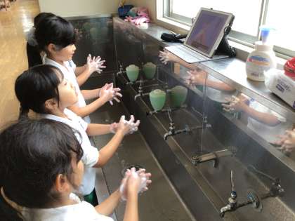 給食の前、外遊びをした後、トイレの後など、手洗いの機会はたくさんあります。正しい手洗いで、健康に過ごしていきましょう。