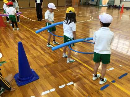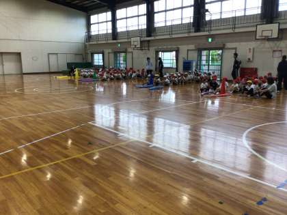 1年生の運動会練習です。競遊の練習をしています。小学校で初めての運動会に向けて力を合わせて頑張っています。