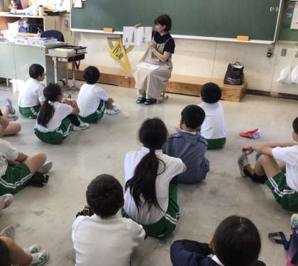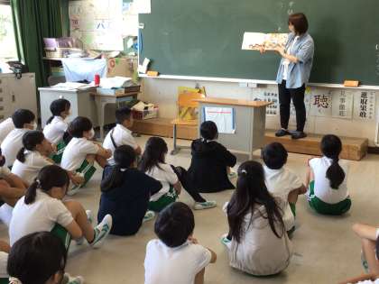 後期最初の読み聞かせをボランティアの「赤ずきんちゃん」さんが、行ってくださいました。お祭りのお話や稲を守るカカシのお話など、季節に合わせた物語に児童たちも聴き入っていました。また、読み聞かせの後、図書室の蔵書の点検を手伝っていただきました。ありがとうございました。