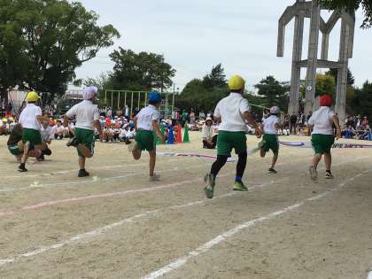 徒競走では元気いっぱいに、風のようにゴールを目指して全力で走り抜けました。