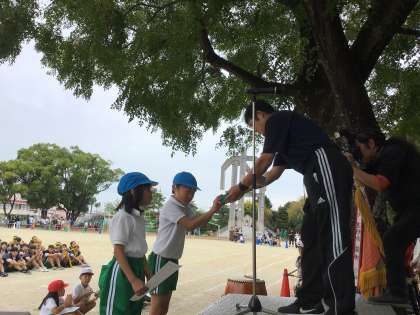 閉会式です。笑顔と絆の金メダルが、児童たちの心に残りました。これからもたくさんの笑顔と絆を大切にしていきます。