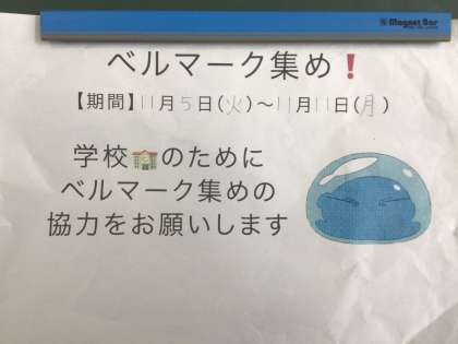 朝、福祉委員が各学級でベルマーク回収への協力を呼びかけていました。家にありましたら、ご協力よろしくお願いします。