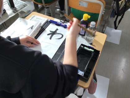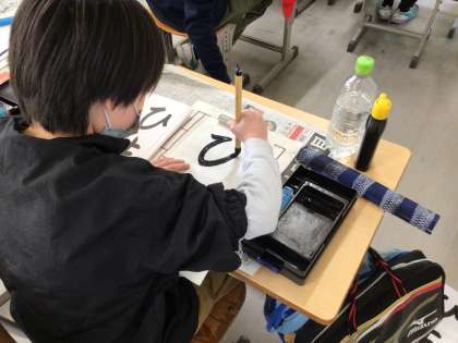 6年生の書写です。ひらがなの点画のつながりと読みやすさを考えて「ひまわり」の文字を練習しています。