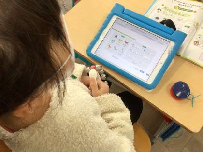 2年生の音楽です。ウッドブロックやベル、タンバリンなどの打楽器で演奏をします。自分でどの楽器を使うかを選び、リズムを奏でました。この学級の人気の楽器は、ウッドブロックでした。