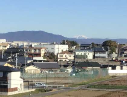竹村小学校の北側に猿投山が見えます。今日の朝は、その奥に美しい雪山が見えています。朝の冷え込みが厳しくなったことを感じます。