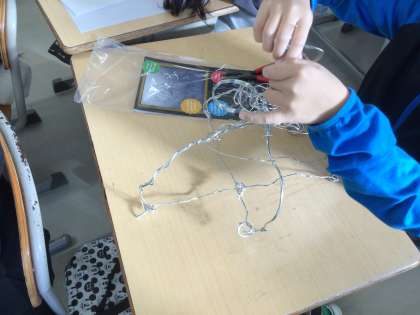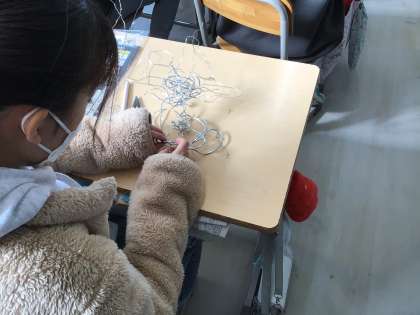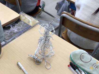 5年生の図工です。針金を使った作品作りです。切ったり、曲げたり、つなげたりと自分の発想を形にしていきます。