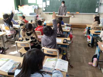1年生の算数です。文章を読み、出てくる数字を○で囲んで確認し、何をしたのかを読み取って、足し算なのか引き算なのかを考えました。0が出てくる計算も練習しました。