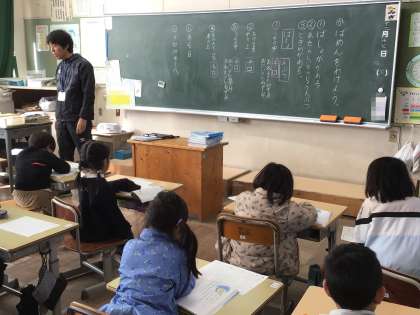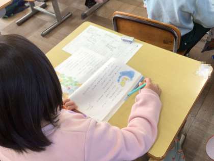 1年生の国語です。物語の場面が変わるキーワードとなる言葉を探して段落番号を付けています。いくつの場面が出てきたのでしょうか?