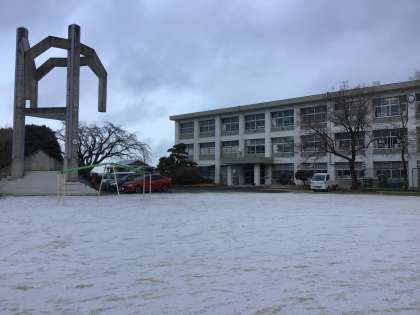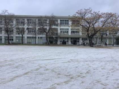 今年の初雪で、運動場にうっすらと雪が積もりました。児童たちは運動場の雪を見て、歓声をあげていました。セーフティの皆様、雪の中での登校の見守りをありがとうございました。