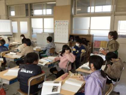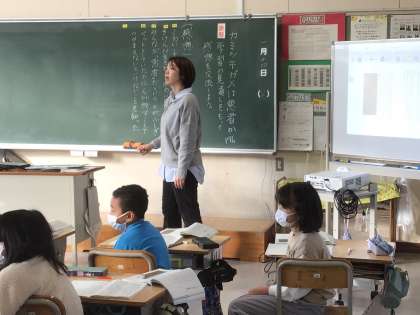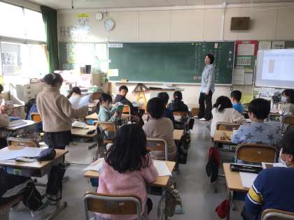 3年生の国語です。外来種をテーマにした説明文を学んでいます。先生の発問に、各自が読み取ったことや文章から考えたことを発表しました。