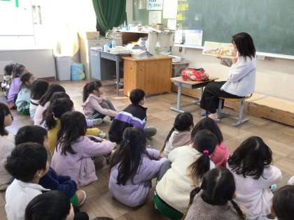 「赤ずきんちゃん」の皆様が来てくださり、2025年の最初の読み聞かせを行っていただきました。
