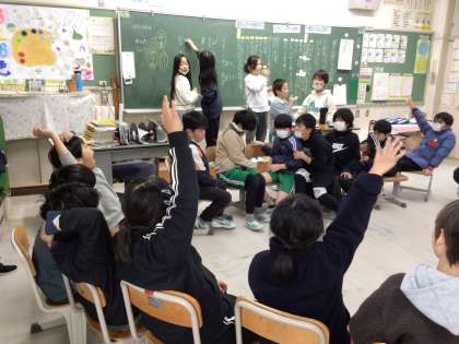 4年生のクラス会議です。卒業を祝う会に向けて、アイデアを出し合いました。