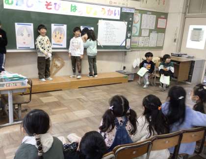 1年生は、むかしあそびの発表会を行いました。