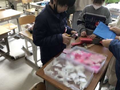5年生が考えた卒業を祝う会プロジェクトが、各学年で動き出しています。写真は4年生の活動風景です。6年生のみなさん、楽しみにしていてください。