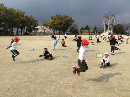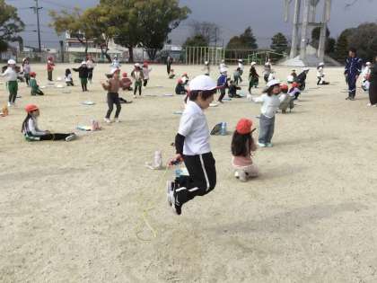 1年生のなわとび納め会です。小学校で初めてのなわとび納め会でしたが、練習の成果を発揮しようと、児童たちははりきっていました。
