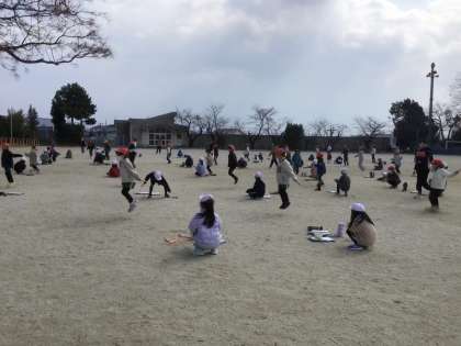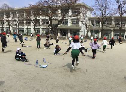 2年生のなわとび納め会です。時間チャレンジ(15秒間、跳び続けることに挑戦。種目は6種目)と回数チャレンジ(決められた時間で前跳びを何回とべるかに挑戦)を行いました。どの児童も、チャレンジ精神いっぱいで頑張りました。