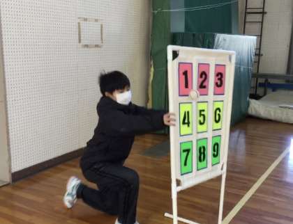 6年生から順番に、希望者が竹小タイムや昼放課に参加します。グローブをはめた児童たちは大谷選手になりきって、的をめがけて全力投球をしています。